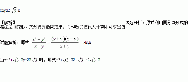 先化简,再求值: ,其中x=2+ ,y=2-.