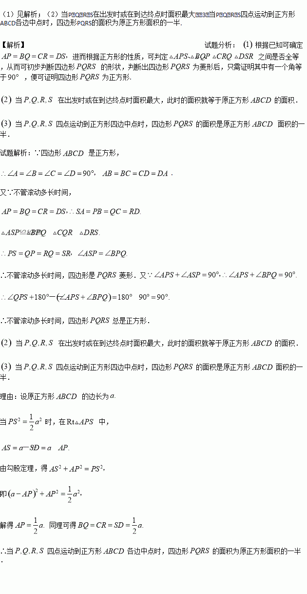 (3)四边形PQRS在什么时候面积为原正方形面积的一半?并说明理由.