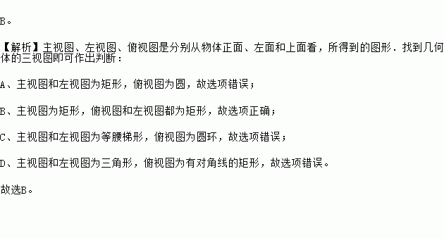 下列几何体的主视图、俯视图和左视图都是长方形的是【 】