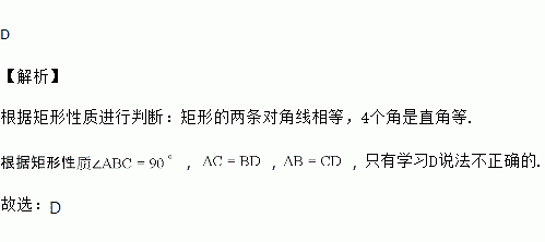 如图,矩形ABCD中,对角线AC,BD相交于点O,下列结论不一定成立的是![]()