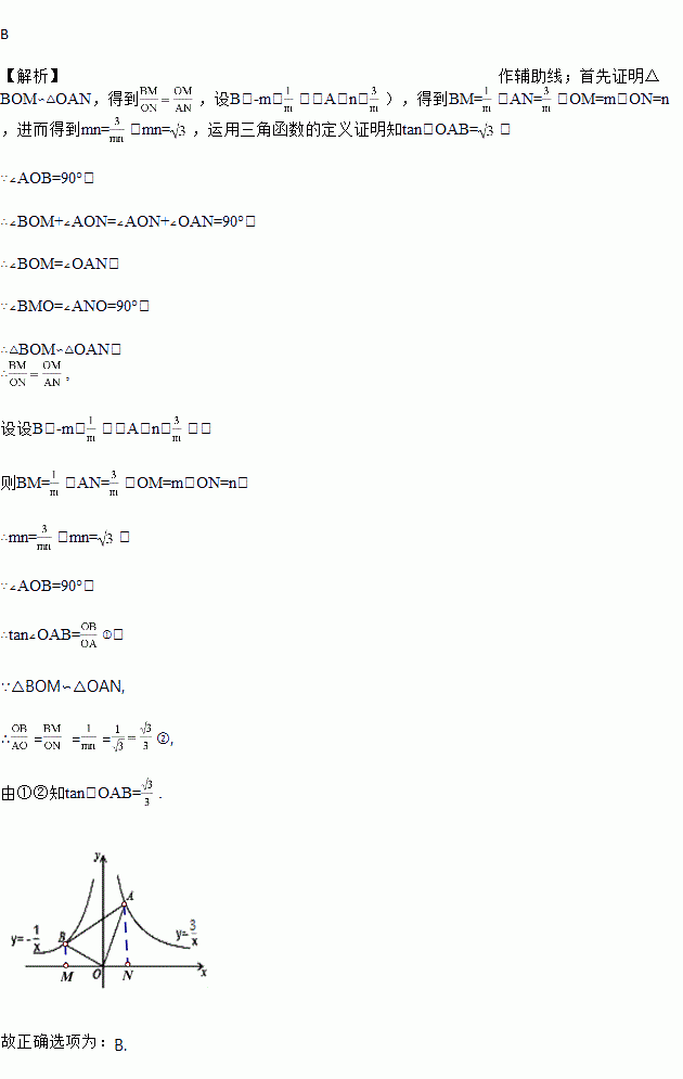 的图象交于B、A两点,则∠OAB的正切值为( )