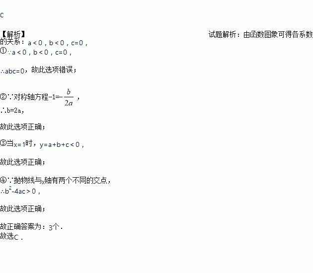 如图是抛物线y=ax2+bx+c的图象,则下列五个结论:①abc<0;②b=2a<0;③a+b+c<0;④.其中正确的有( )