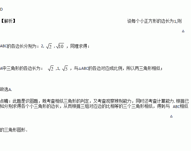 以下各图放置的小正方形的边长都相同,分别以小正方形的顶点为顶点画三角形,则与△ABC相似的三角形图形为( )