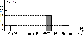 ½â£º£¨1£©ÓÉÉÈÐÎͳ¼ÆÍ¼¿ÉÖª£¬¡°Á˽âºÜÉÙ¡±Õ¼50%£¬Ñù±¾ÈÝÁ¿Îª25¡Â50%=50ÈË£¬