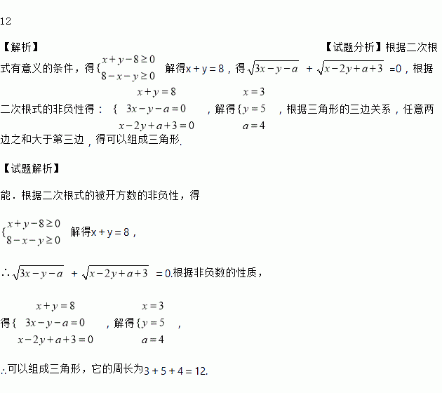,试问长度分别为x,y,a的三条线段能否组成一个三角形?如果能,请求出该三角形的周长;如果不能,请说明理由.