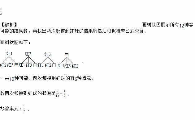 一个仅装有球的不透明布袋里共有4个球(只有颜色不同),其中3个是红球,1个是白球,从中任意摸出一个球,记下颜色后不放回,搅匀,再任意摸出一个球,则两次摸出都是红球的概率是_____.