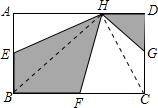 分析:连接HB,HC,由E为AB的中点,得到AE=EB,再由矩形的性质得到HA与AB垂直,可利用等底同高得到三角形AHE与三角形BHE面积相等,由F为BC中点,同理得到三角形HBF与三角形HCF面积相等,由G为DC中点,同理可得三角形HGC与三角形HGD面积相等,而这六个三角形面积之和为矩形的面积,等量代换可得出阴影部分为其中的三个不同的三角形面积之和,为矩形面积的一半,求出即可.