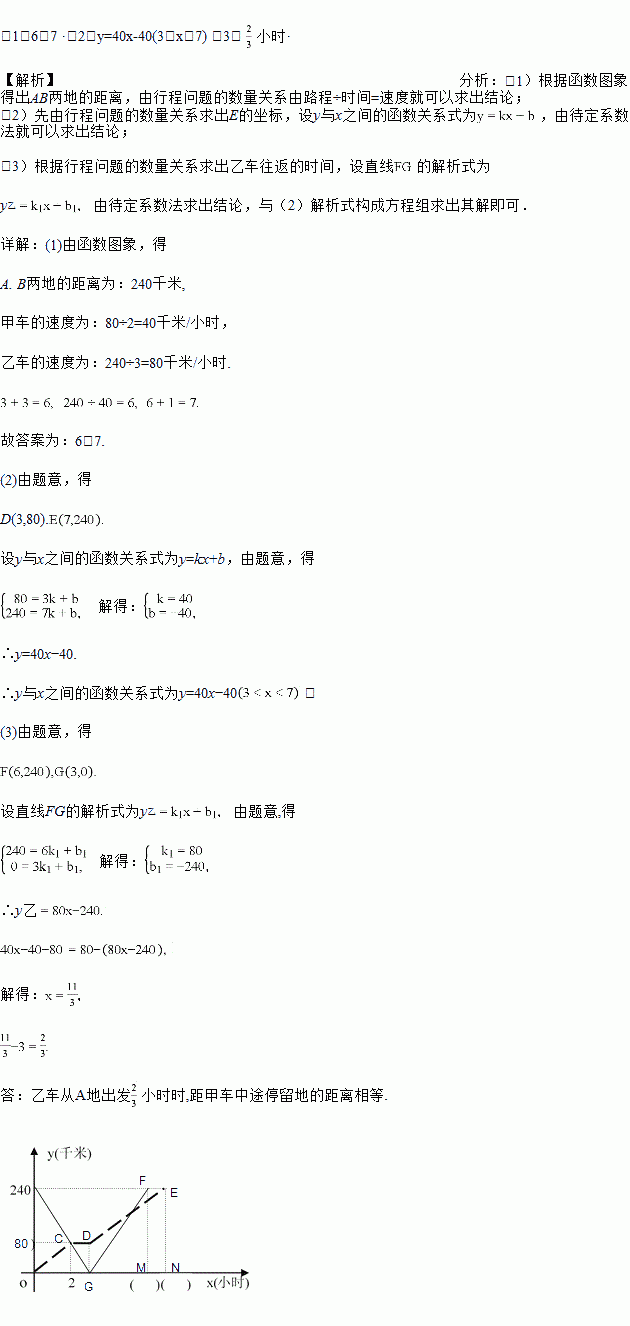 (3)直接写出:乙车从A地出发多少小时后,甲.乙两车分别到甲车中途停留地的距离相等?
