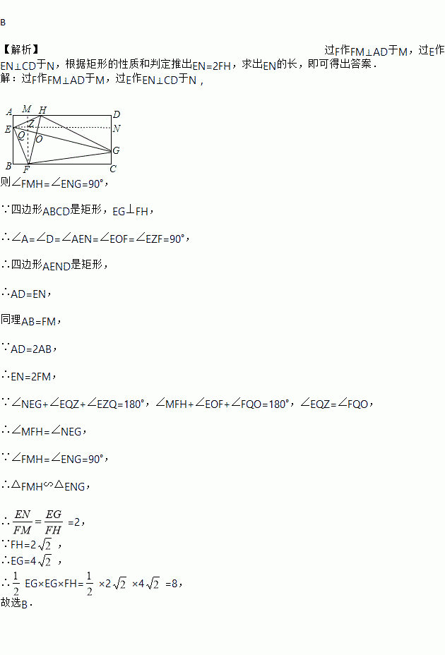 如图,矩形ABCD中,AD=2AB,E、F、G、H分别是AB,BC,CD,AD边上的点,EG⊥FH,FH=2