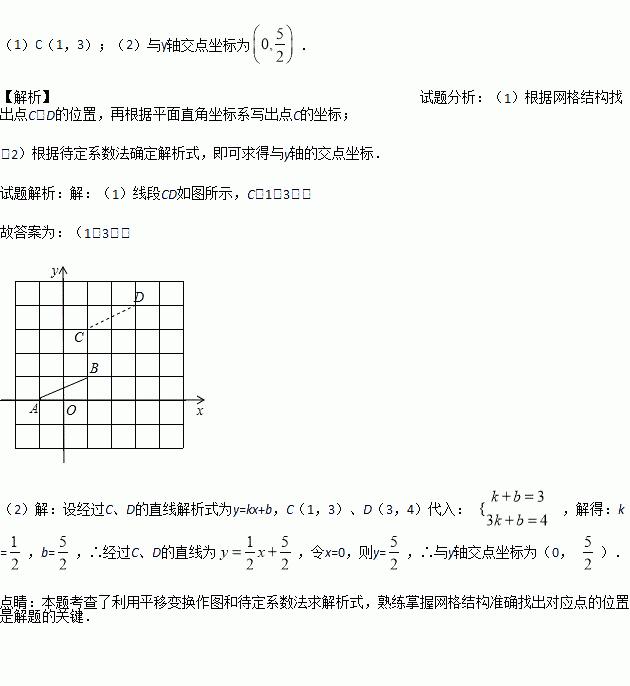 如图,已知A(﹣1,0),B(1,1),把线段AB平移,使点B移动到点D(3,4)处,这时点A移动到点C处.