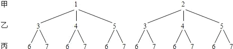 甲口袋中装有两个相同的小球,它们分别写有1和2;乙口袋中装有三个相同的小球,它们分别写有3,4和5;丙口袋中装有两个相同的小球,它们分别写有6和7.从这3个口袋中各随机地取出1个小球.