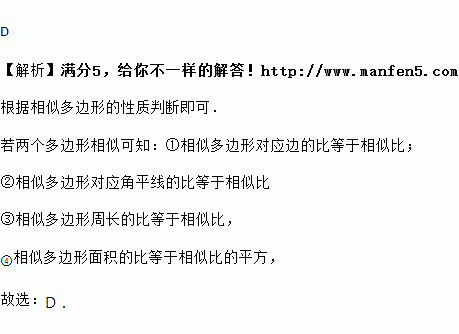 D. 相似多边形面积的比等于相似比