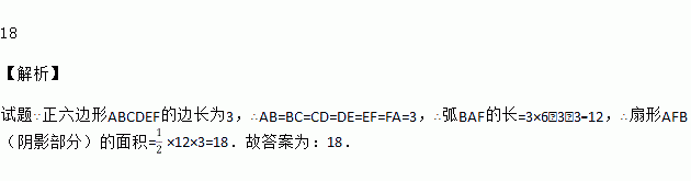 如图,将边长为3的正六边形铁丝框ABCDEF变形为以点A为圆心,AB为半径的扇形(忽略铁丝的粗细).则所得扇形AFB(阴影部分)的面积为_____.