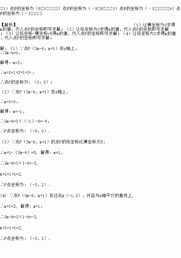 已知点P(3m﹣6,m+1),试分别根据下列条件,求出点P的坐标.