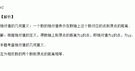 在数轴上,与原点的距离等于2的点表示的数为_____.