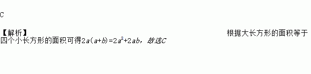 C 【解析】根据大长方形的面积等于四个小长方形的面积可得2a(a+b)=2a2+2ab,故选C