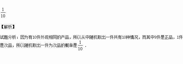 现有10件外观相同的产品,其中9件是正品,1件是次品,现从中随机取出一件为次品的概率