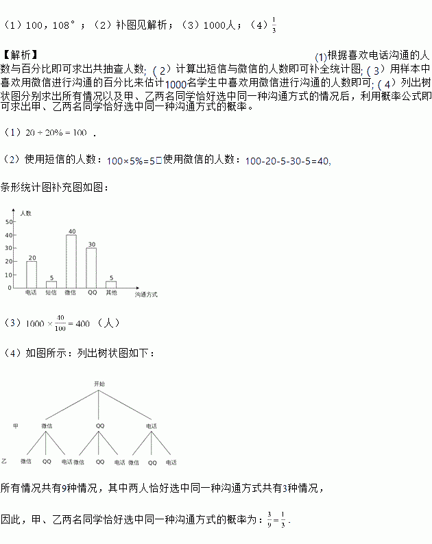 £¨4£©Ä³Ìì¼×¡¢ÒÒÁ½Ãûͬѧ¶¼Ïë´Ó¡°Î¢ÐÅ¡±¡¢¡°QQ¡±¡¢¡°µç»°¡±ÈýÖÖ¹µÍ¨·½Ê½ÖÐѡһÖÖ·½Ê½Óë¶Ô·½ÁªÏµ£¬ÇëÓÃÁбí»ò»Ê÷״ͼµÄ·½·¨Çó³ö¼×¡¢ÒÒÁ½ÃûͬѧǡºÃÑ¡ÔñͬһÖÖ¹µÍ¨·½Ê½µÄ¸ÅÂÊ£®