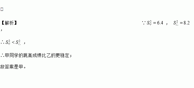 体育老师对甲、乙两名同学分别进行了8次跳高测试,经计算这两名同学成绩的平均数相同,甲同学的方差是,乙同学的方差是,那么这两名同学跳高成绩比较稳定的是_____同学.