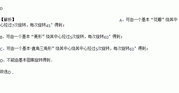 下面四个图案中,不能由基本图案旋转得到的是( )