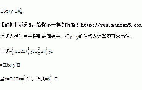 先化简,再求值. x﹣2(x﹣y2)+(﹣x+y2),其中x=﹣2,y= .