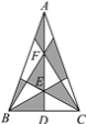 如图,在等腰三角形ABC中,AB=AC,BC=4,D为BC的中点,点E,F在线段AD上,tan∠ABC=3,则阴影部分的面积是________.