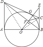 如图,AB为⊙0的直径,DC、DA、CB分别切⊙O于G、A、B,OE⊥BD于F,交BC的延长线于E,连CF.