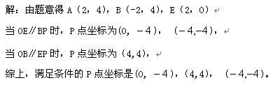 的图象交于A、B两点,过点A作AE⊥x轴于点E,若△AOE的面积为4,P是坐标平面上的点,且以点B、O、E、P为顶点的四边形是平行四边形,则满足条件的P点坐标是 .![]()