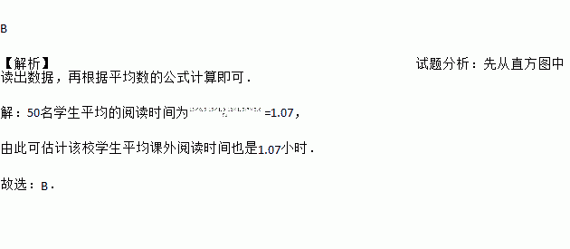 某学校为了了解学生的课外阅读情况,随机调查了50名学生,得到他们在某一天各自课外阅读所用时间和数据,结果如图,根据此条形图估计这一天该校学生平均课外阅读时间为( )