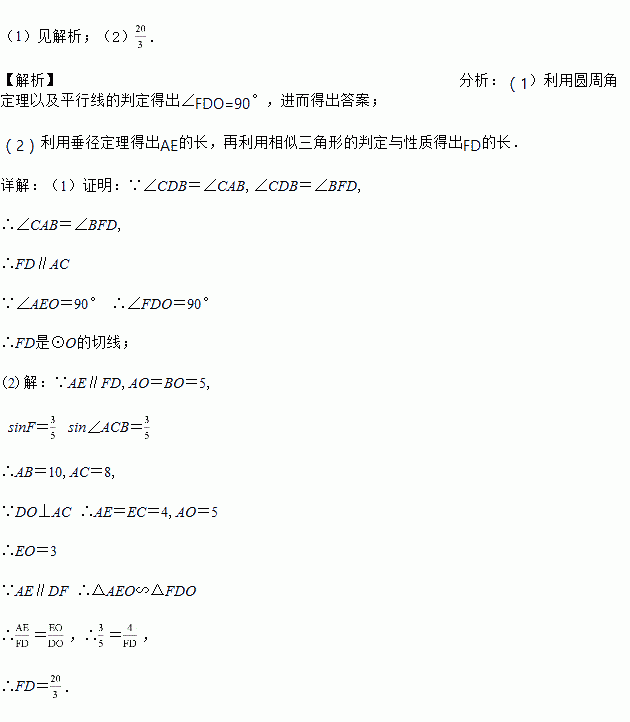 (1)求证:FD是⊙O的切线;