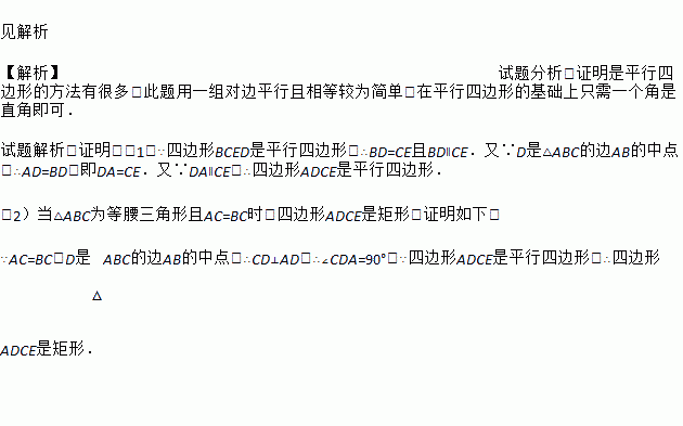 已知,如图,点D是△ABC的边AB的中点,四边形BCED是平行四边形,