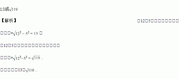 一直角三角形两条边长分别是12和5,则第三边长为________.