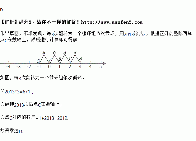 绕着顶点顺时针方向在数轴上连续翻转,翻转![]()
