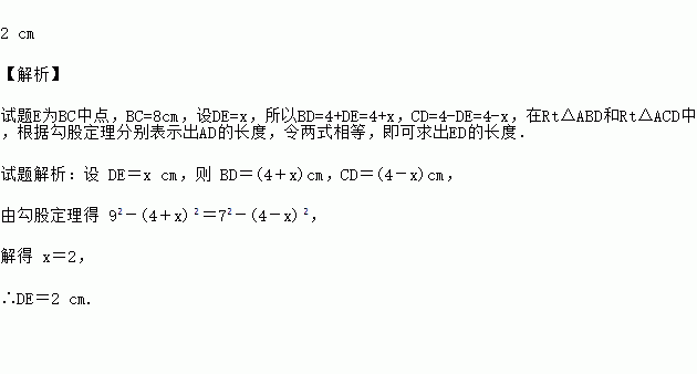 如图,在△ABC中,AD,AE分别是BC边上的高和中线,AB=9cm,AC=7cm,BC=8cm,求DE的长.