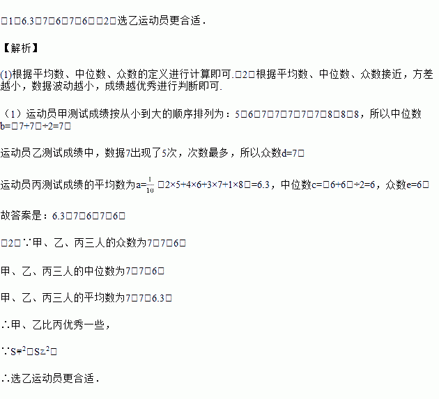 垫球是排球队常规训练的重要项目之一.下列图表中的数据是甲、乙、丙三人每人十次垫球测试的成绩,测试规则为连续接球10个,每垫球到位1个记1分.