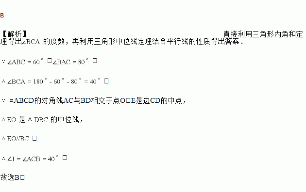 如图,在?ABCD中,对角线AC与BD相交于点O,E是边CD的中点,连结若![]()