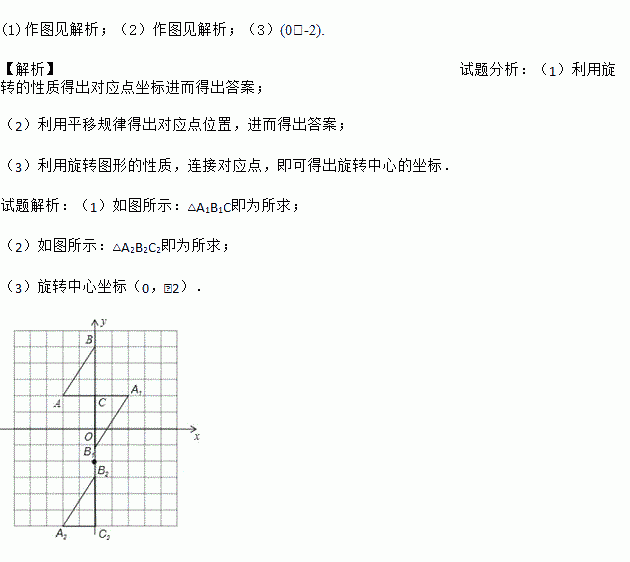 (3)若将△A1B1C绕某一点旋转可得到△A2B2C2,请直接写出旋转中心的坐标.