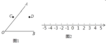 (1)尺规作图:校园有两条路OA、OB,在交叉路口附近有两块宣传牌C、D,学校准备在这里安装一盏路灯,要求灯柱的位置P离两块宣传牌一样远,并且到两条路的距离也一样远,请你帮助画出灯柱的位置P(如图1).(不写画图过程,保留作图痕迹)
