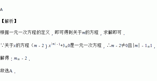 若关于x的方程(m﹣2)x|m|﹣1+3=0是一元一次方程,则m值为( )