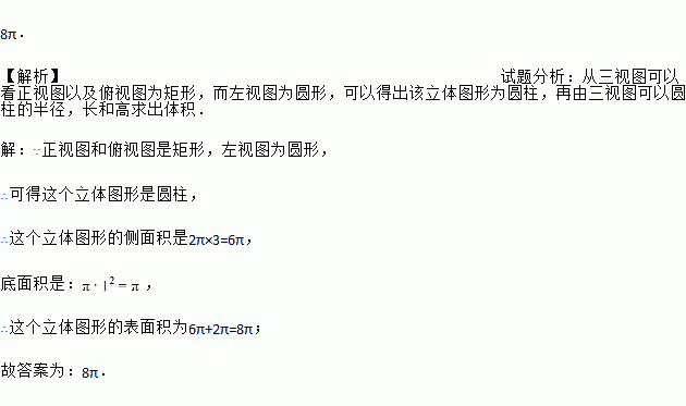 一个立体图形的三视图如图所示,请你根据图中给出的数据求出这个立体图形的表面积为 _______.