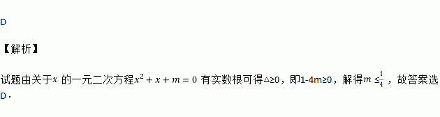 关于的一元二次方程有实数根,则的取值范围是 ( )