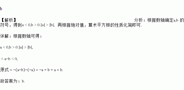 若a、b为实数,在数轴上的位置如图所示,则= _________.