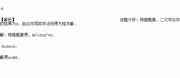 多项式8x2﹣3x+5与多项式3x3+2mx2﹣5x+7相加后,不含二次项,则常数m的值是________.