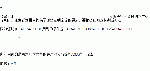 要测量河两岸相对的两点A、B的距离,先在AB的垂线BF上取两点C、D,使,再作出BF的垂线DE,使A、C、E在同一条直线上![]()