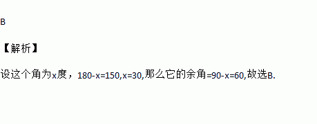 如果一个角的补角是150°,那么这个角的余角的度数是( )