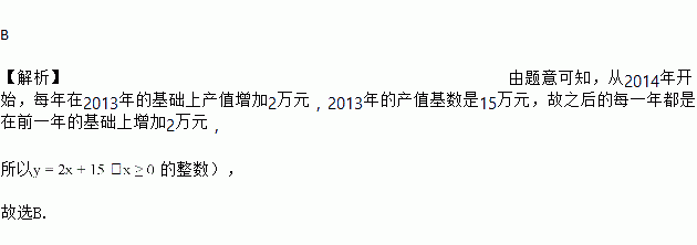 一家校办工厂2013年的年产值是15万元,计划从2014年开始,每年增加2万元,则年产值(从2013年开始)(万元)与年数![]()