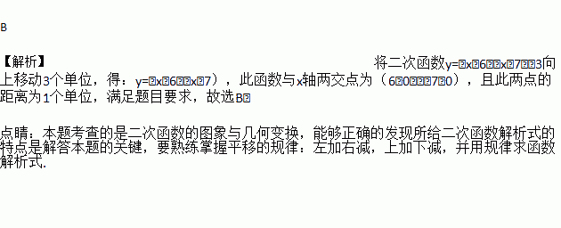 平面直角坐标系中,若平移二次函数y=(x﹣6)(x﹣7)﹣3的图象,使其与x轴交于两点,且此两点的距离为1个单位,则平移方式为( )