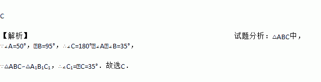 已知△ABC∽△A1B1C1,且∠A=50°,∠B=95°,则∠C1等于( )