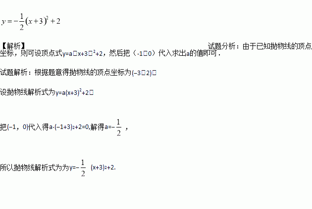 已知二次函数图象的对称轴是x=-3,且函数有最大值为2,图象与x轴的一个交点是