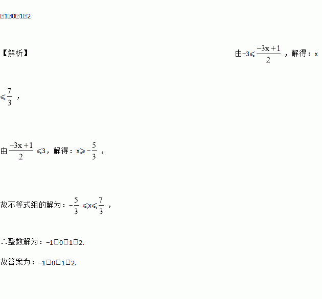满足不等式组的整数解是________.